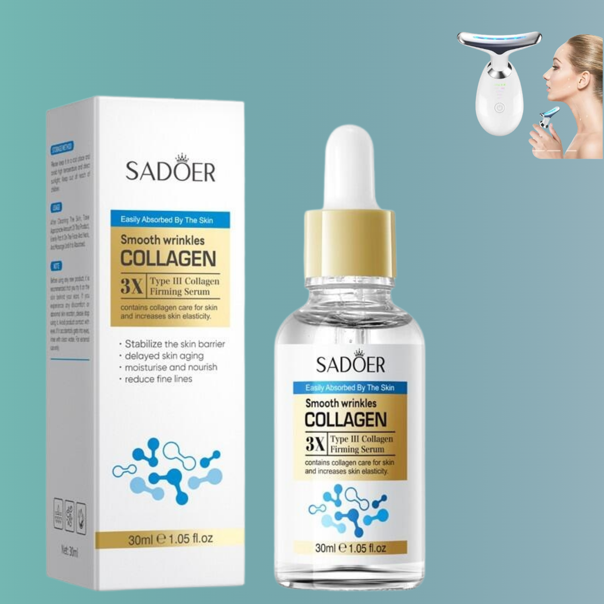 Consigue el Sérum con Colágeno, Niacinamida y Ácido Hialurónico junto con el Escultor Facial y potencia tus resultados: piel más firme con colágeno, tono uniforme con niacinamida e hidratación con ácido hialurónico. El combo ideal para una piel joven y radiante.